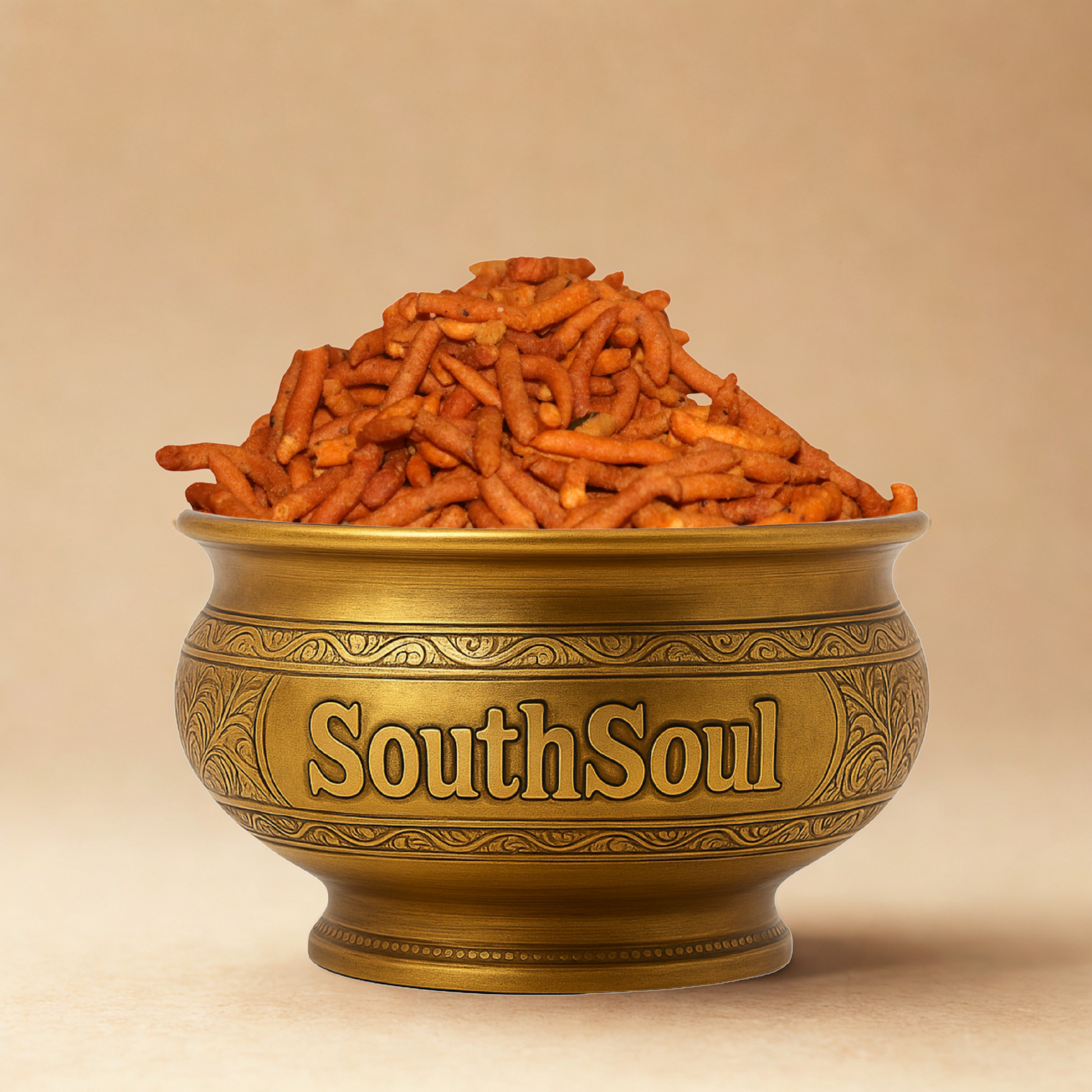 At SouthSoul, our Karachev is handcrafted in small batches using traditional Tamil recipes and fried in pure palm oil to maintain freshness and authentic taste. It’s the perfect companion to your evening tea or festive platter—crunchy, spicy, and absolutely addictive!