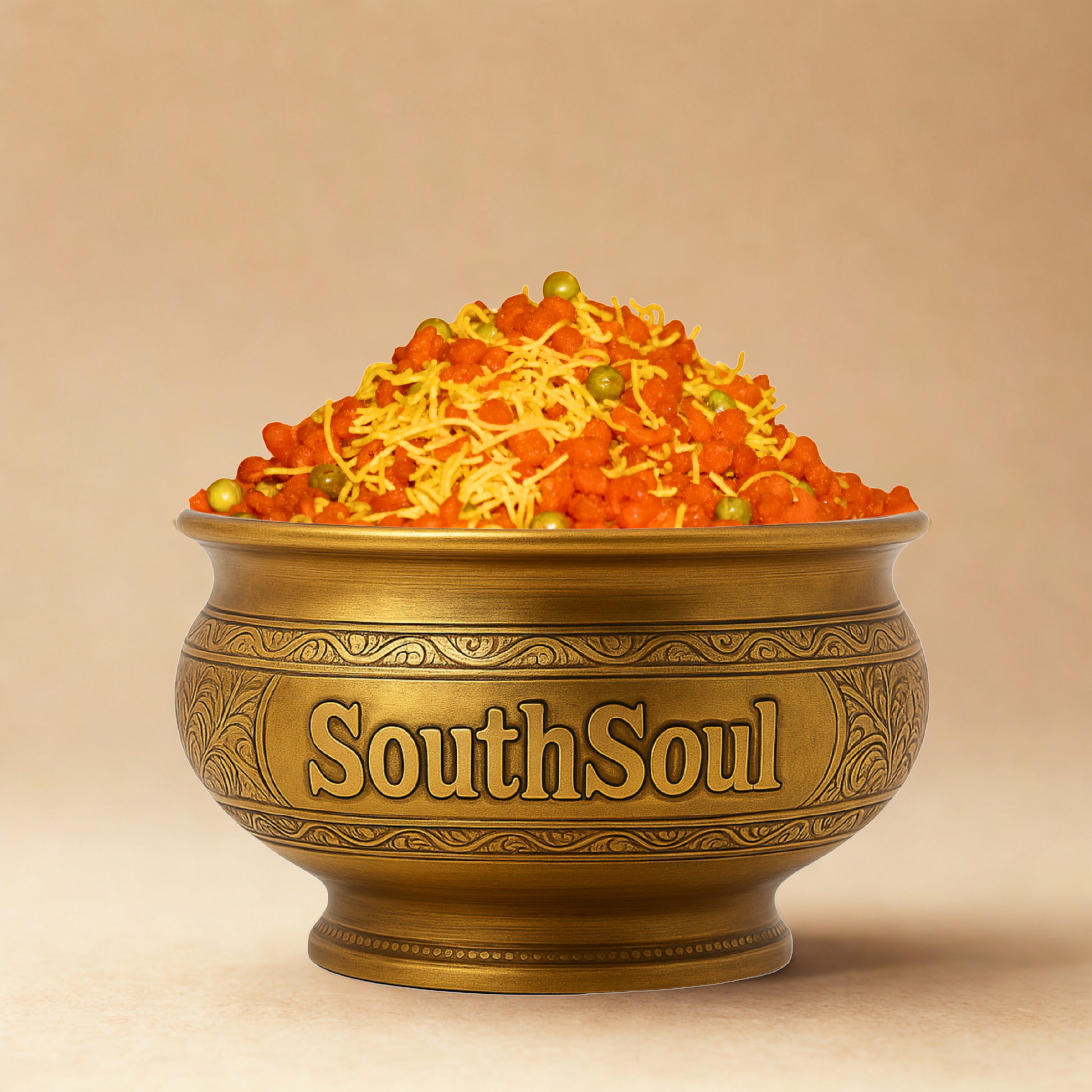 Sweet Mixture (இனிப்பு மிக்சர்) is a traditional South Indian snack made by coating crunchy fried omapodi (sev), kara boondi, and roasted gram dal in a rich, golden jaggery syrup. Each bite combines crisp textures with deep, earthy sweetness, delivering a nostalgic taste rooted in Tamil Nadu's festive traditions.